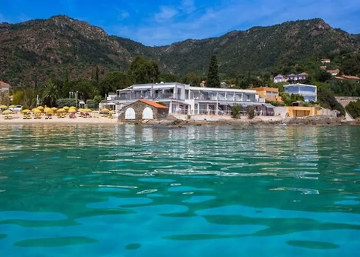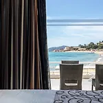 Offering a private beach area, the beachfront Roc Hotel - Hotel 4 Etoiles Les Pieds Dans L'Eau Le Lavandou lies in the Saint-Clair Beach district of Le Lavandou, within 10 minutes' drive of the sand Plage de Jean Blanc Beach and 4.8 km from the medieval fortress "Fort de Bregancon". The 4-star hotel also provides guests with a safety deposit box and 24-hour security service.